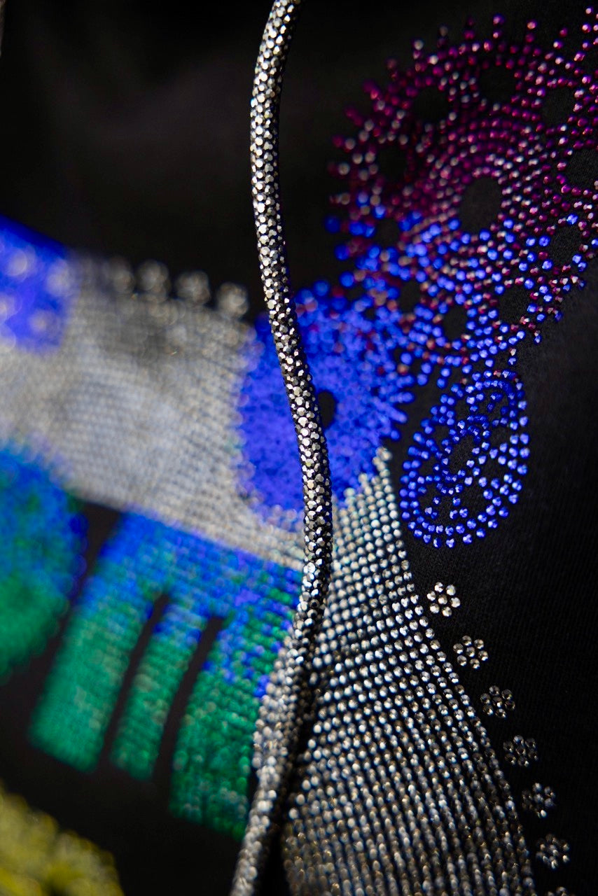 Black Unisex Hoodie with Crystal Strings featuring luxury crystals in the Pride TomTom logo