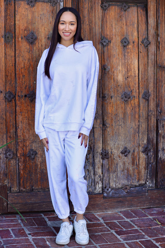 "I Got Pumped in Las Vegas" White Crystal Martini Sweatpants